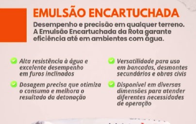 A Emulsão Encartuchada da Rota Comércio foi desenvolvida para garantir desempenho mesmo em ambientes com água e furos inclinados